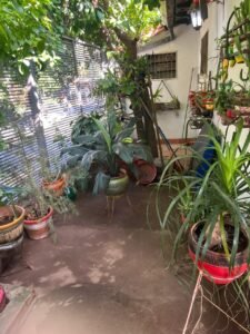 * Patio frontal con pasto y plantas